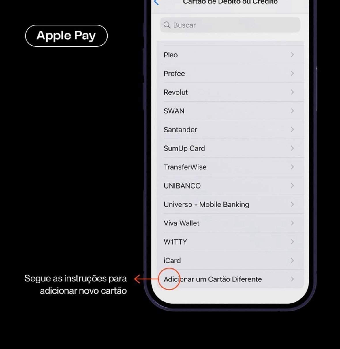 Para adicionar um cartão à Apple Pay, segue estes passos: